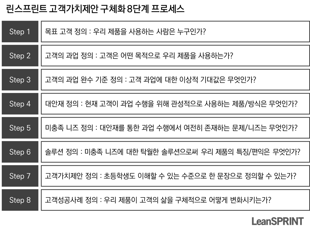 고객가치제안을 구체화하기 위한 8단계 프로세스는 아래와 같다.