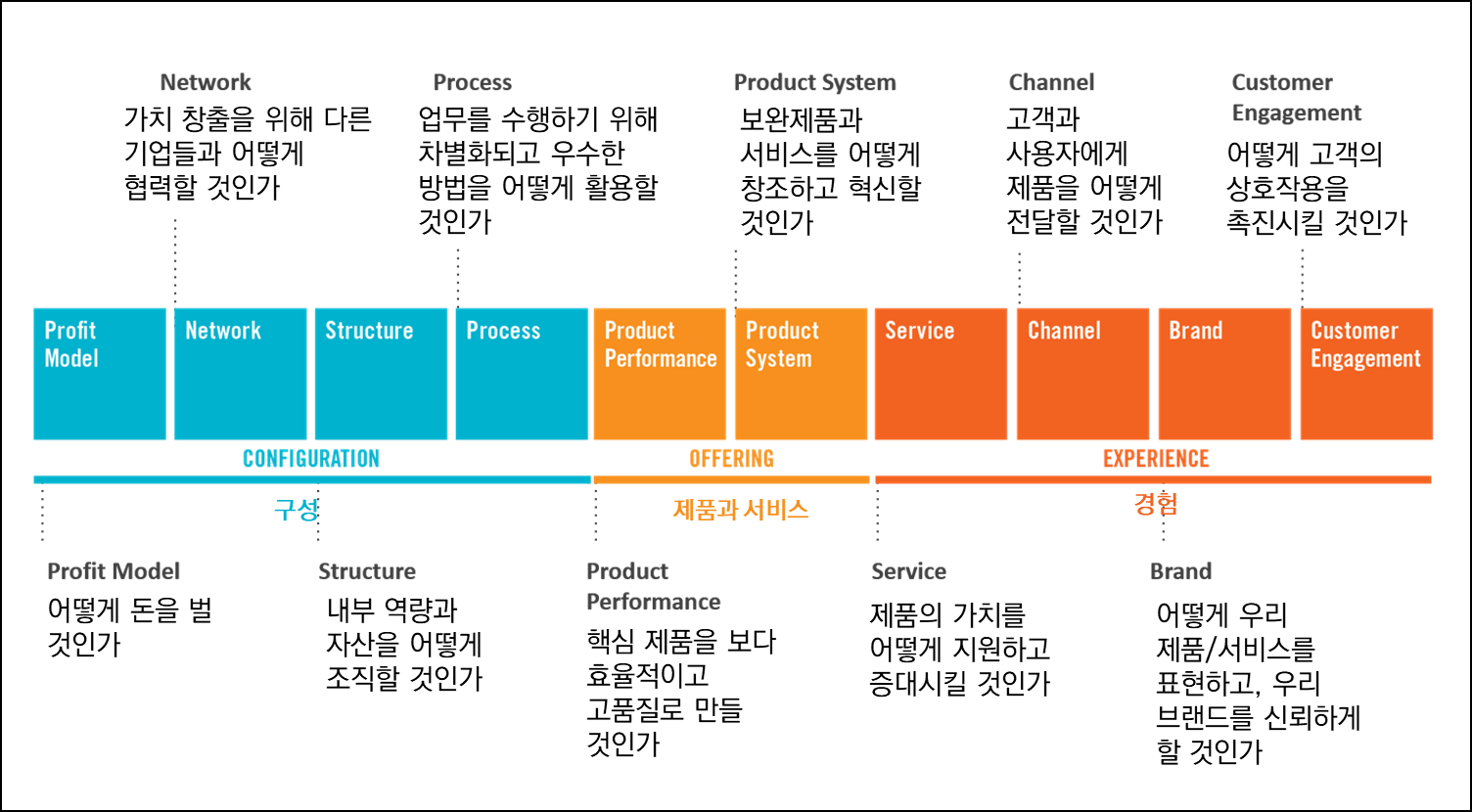 1) 구성(Configuration) 혁신 : 고객 입장에서는 눈에 보이지 않는 회사 내부의 가치제안 창출 활동관련 혁신 의미