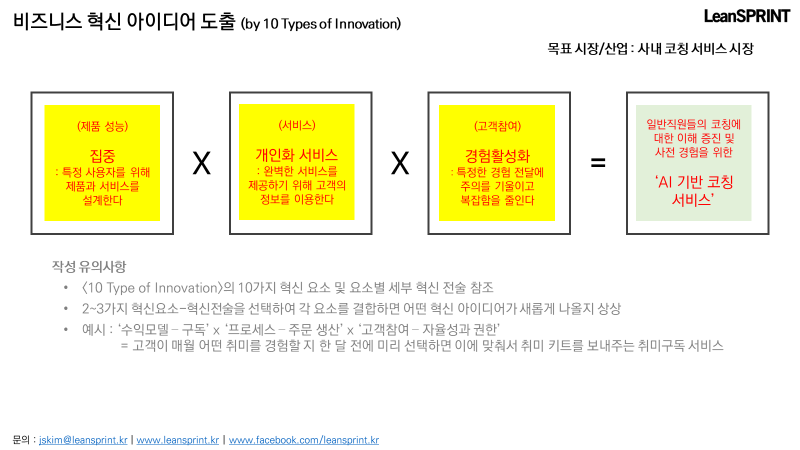 세부 전술을 활용한 비즈니스 모델 혁신 아이디어 발상은 아래에서 설명하고자 한다.