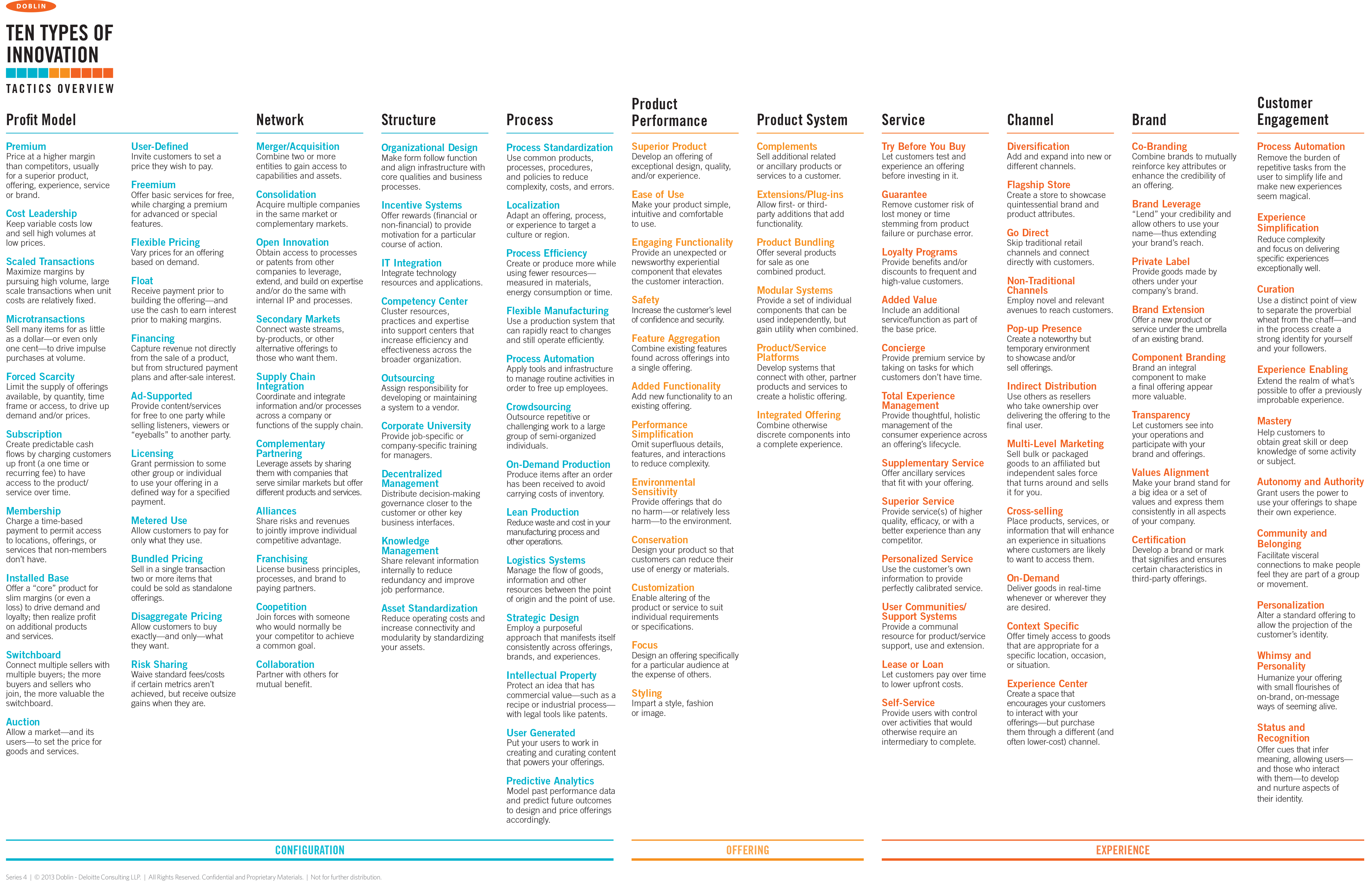- 10 Types of Innovation Tactics Overview (PDF 파일) : https://www.deloittedigital.com/content/dam/us/confidential---legacy-assets/dd-marketing/general/300---pr---communications/330_-_dd_com_website/051-offerings_detail/doblin-transition/10-types-of-innovation/design/pdf-updates/offering-20221202-doblin-10-types-brochure_download-02.pdf