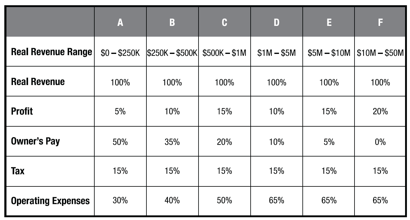 만약 고정비 등을 고려해서 회사 운영비용이 빠듯하거나 부족한 상황이라면 우선 할 수 있는대로 운영비 예산 내에서 해결을 하고 운영비를 결정하는 변수(결국 수입, 매출)를 늘리기 위해 노력해야 한다. 미칼로위츠는 이런 과정과 고민을 통해 수입을 증가함과 동시에 수익이 더 크게 성장하는 회사 시스템을 만들 수 있다고 주장한다.
