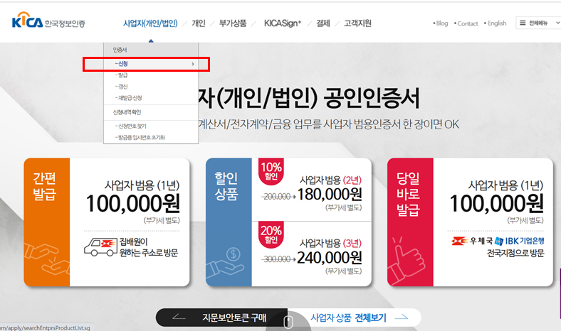 2) 공인인증기관(필자는 한국정보인증)에서 직접 신청해서 발급받기 (신원확인을 위한 지정은행 방문 필수 / 비용 4,400원)