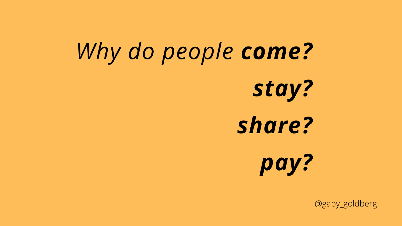 최종 소비자가 왜 1) 방문하고, 2) 머물고, 3) 공유하고, 4) 돈을 지불하는지에 대해 순차적으로 납득하는 것이 가브리엘 골드버그의 프레임워크 핵심이다.