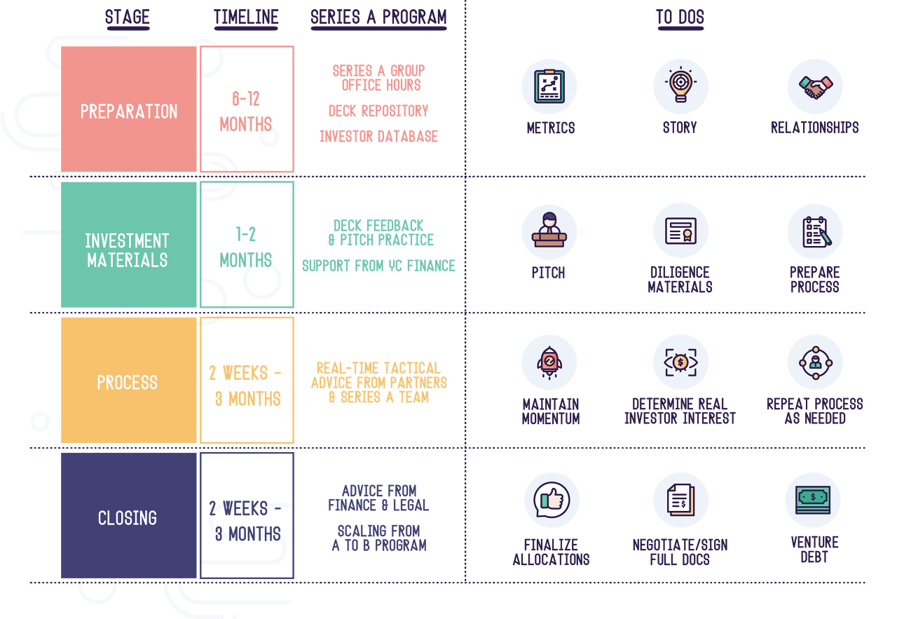 글로벌 액셀러레이터 Y-Combinator가 Series A 라운드 투자 전반을 정리한 'Series A Guide'에서도 투자 준비 단계(Preparation)에서 핵심지표(Metric)와 비즈니스 모델 스토리텔링(Story)과 함께 투자자와의 관계 구축(Relationships)을 주로 해야 할 과업으로 정의했다.